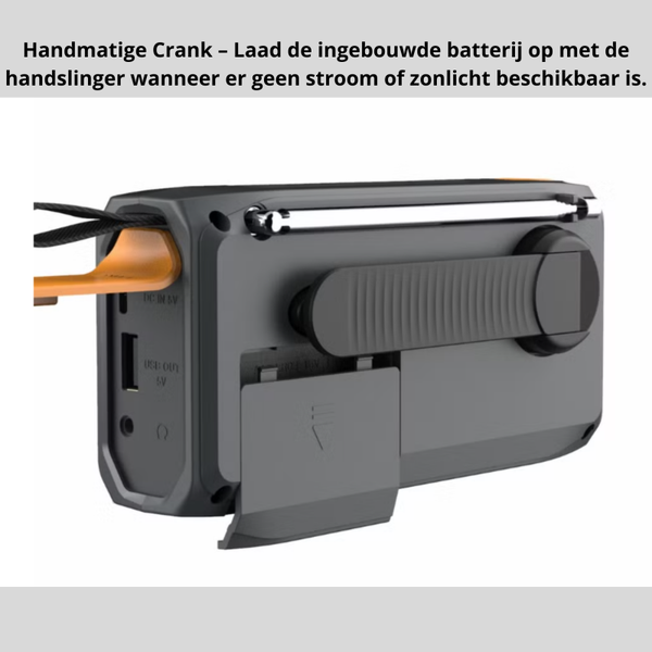 3 laadsystemen – USB-C, zonnepaneel en handdynamo