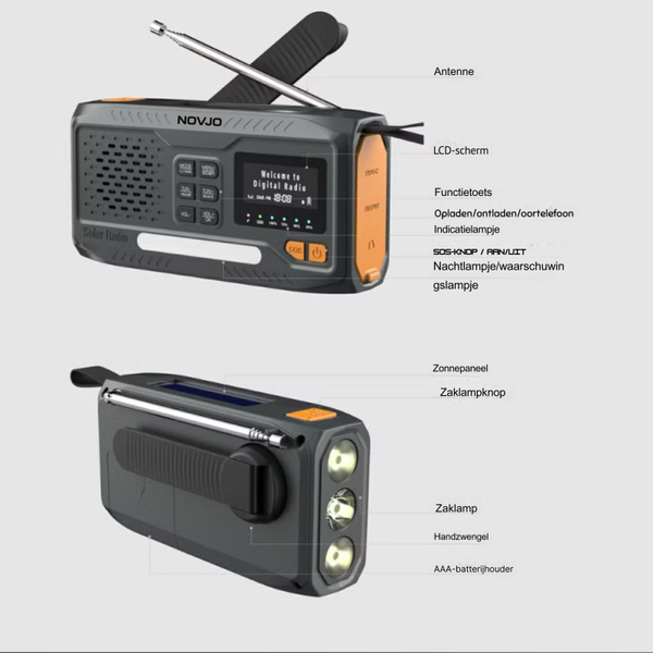 NOVJO Noodradio – DAB+/FM, Bluetooth, Powerbank & Zaklamp